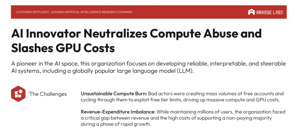 See how a leader in the AI space saved up to $150,000 in compute and GPU costs during a brief proof of value period by stopping the automated free-account abuse that was silently draining their infrastructure.